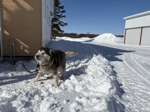 写真は雪をよろこぶしべた。うれしいとき、前肢をバ!と開いて姿勢を低くするのがかわいい。
